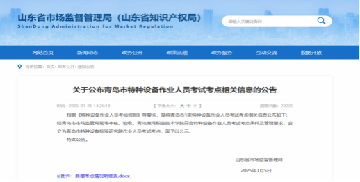 近日,青岛市政务网、山东省市场监督管理局正式公布,青岛港湾职业技术学院成功获批“安全生产培训机构”与“特种设备作业人员考试点”两项资质。